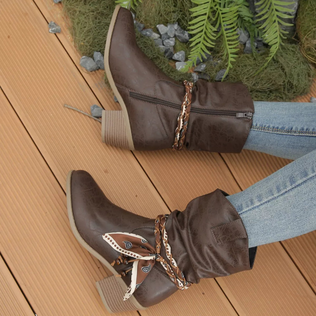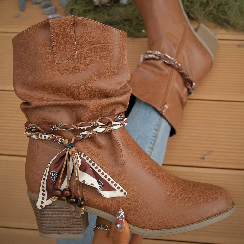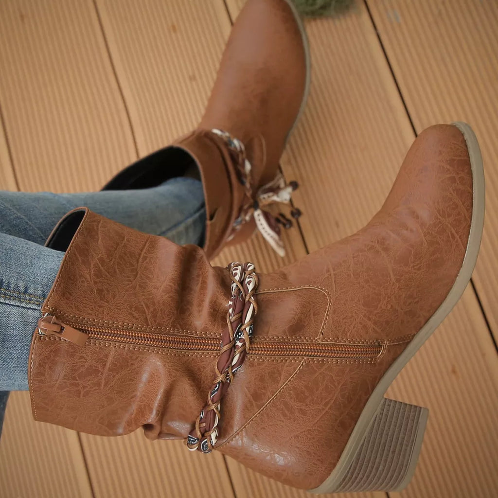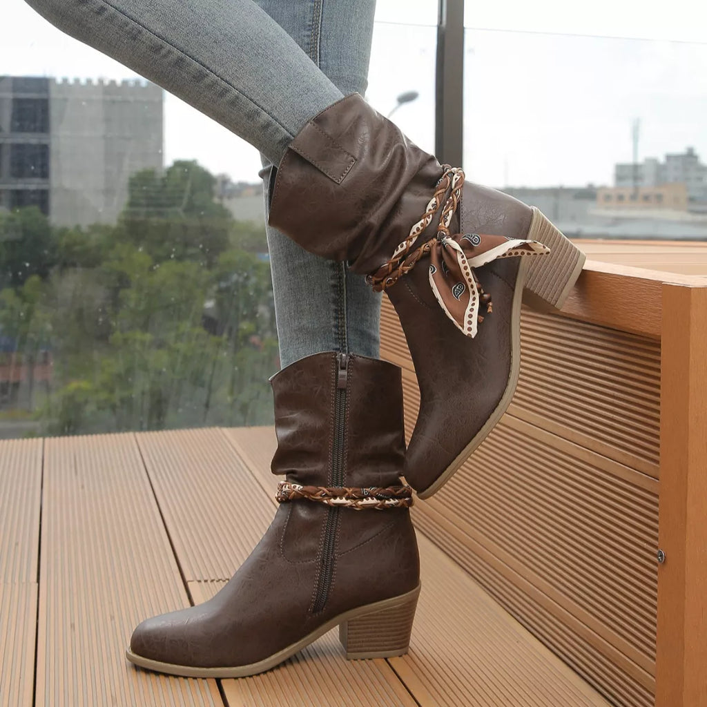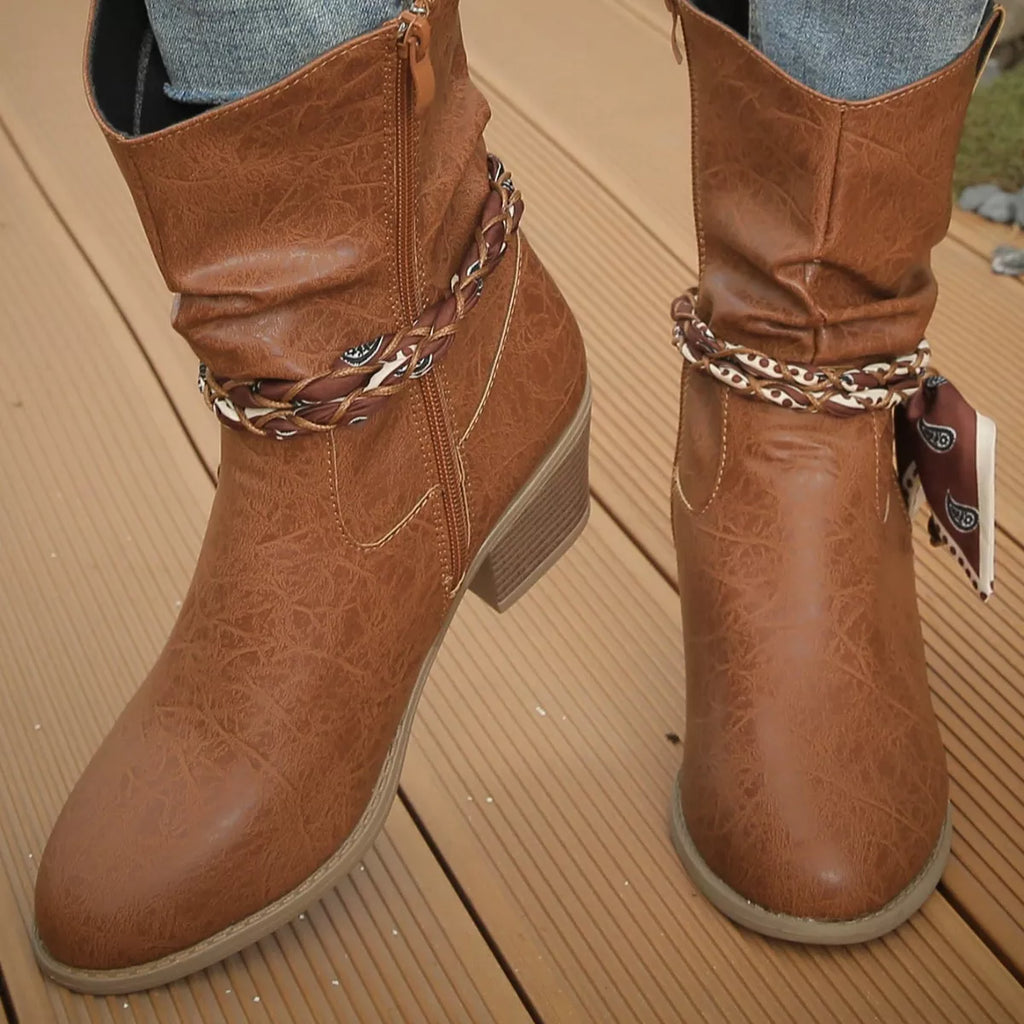 Braided Detail Western Boots with Block Heels