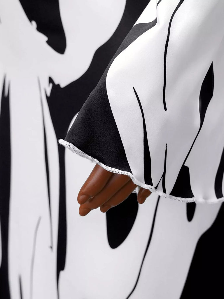 Abstract Print Long Sleeve Maxi Dress