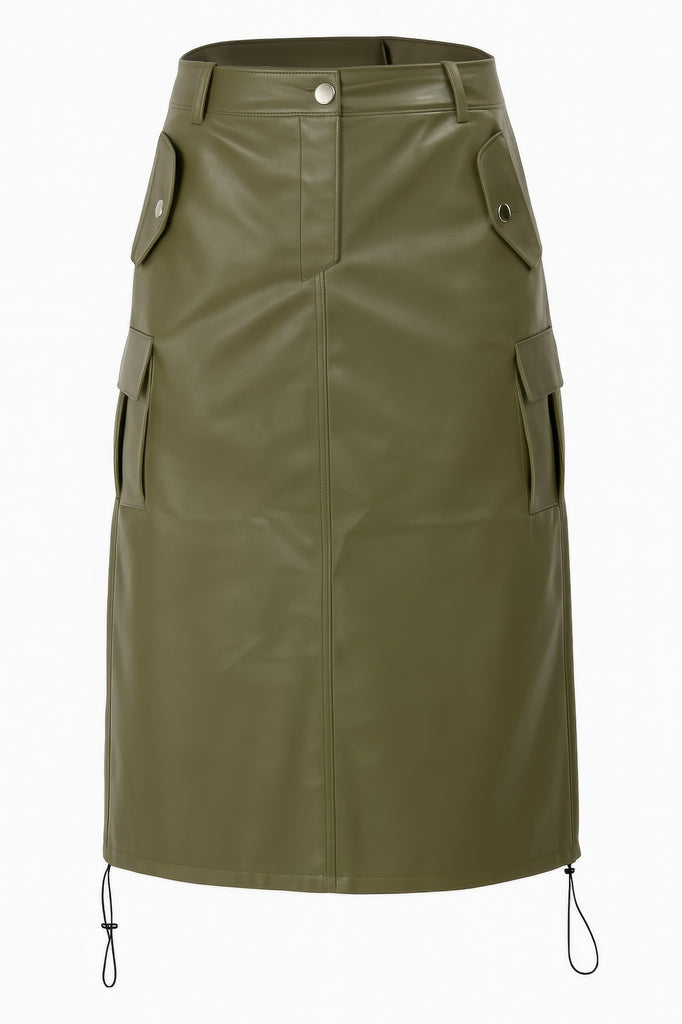 Pu Side Pockets Midi Skirt