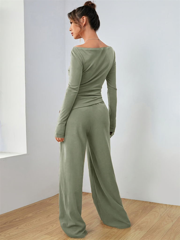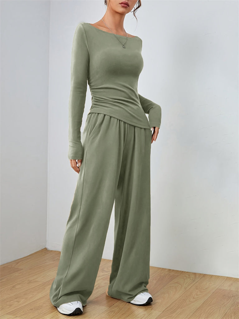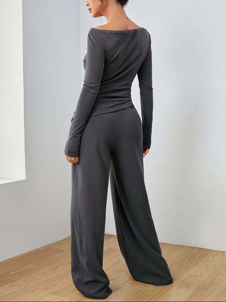 Casual Long Sleeve Top & Wide Leg Pants Set
