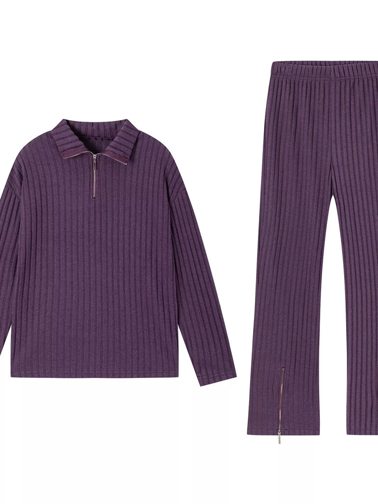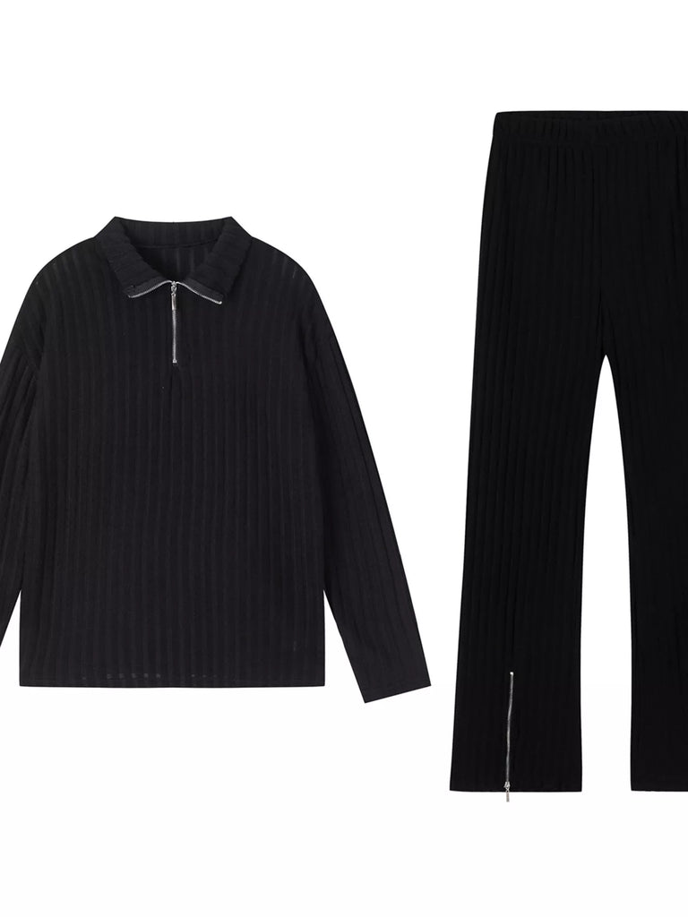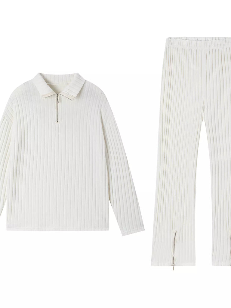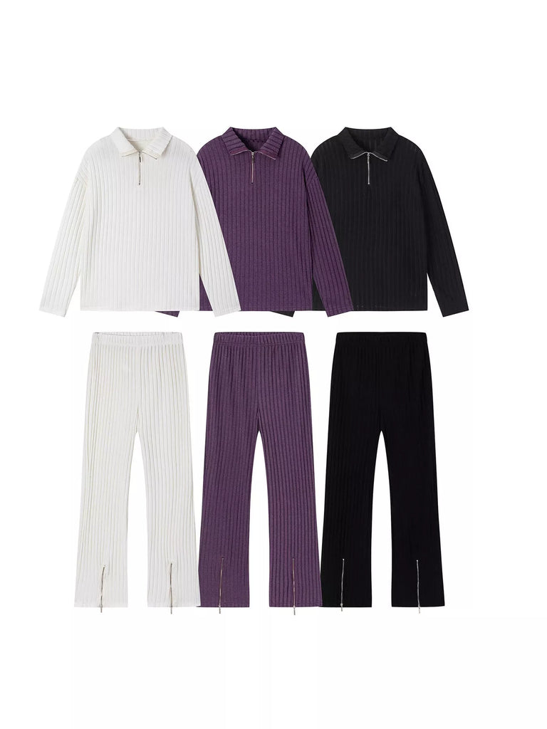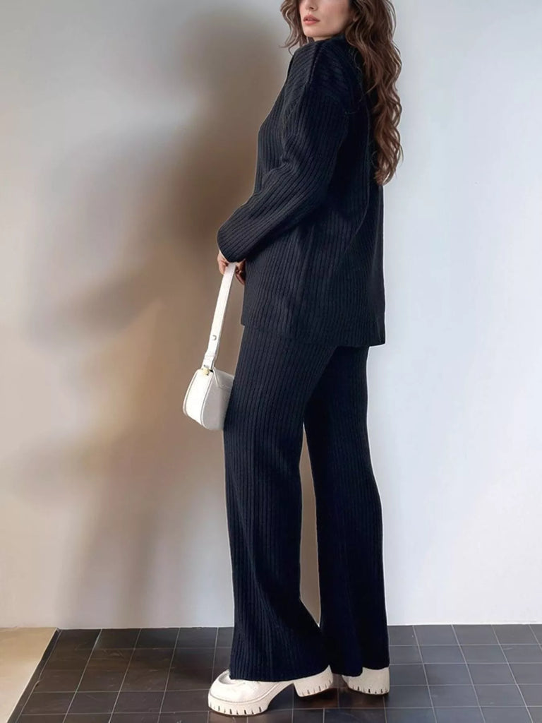 Ribbed Knit Top and Pants Set