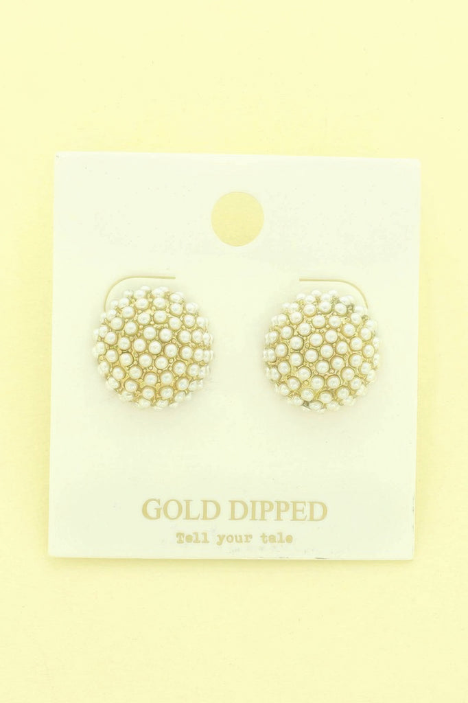 Gold Plated Pearl Pave Sphere Ball Earrings