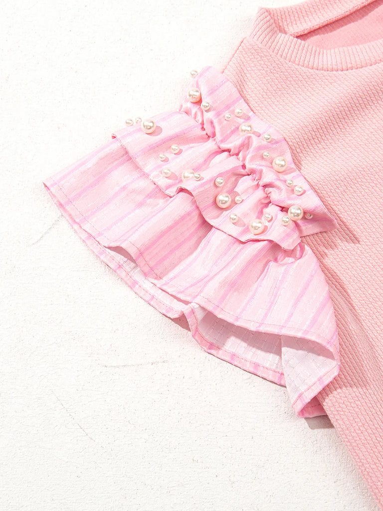 Pearl Embellished Ruffle Sleeve Blouse