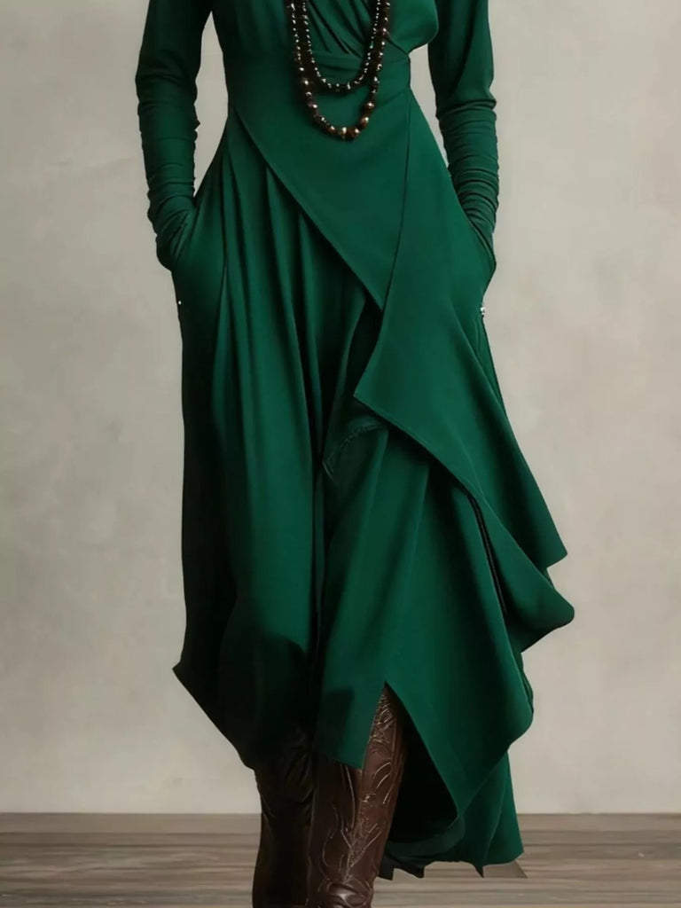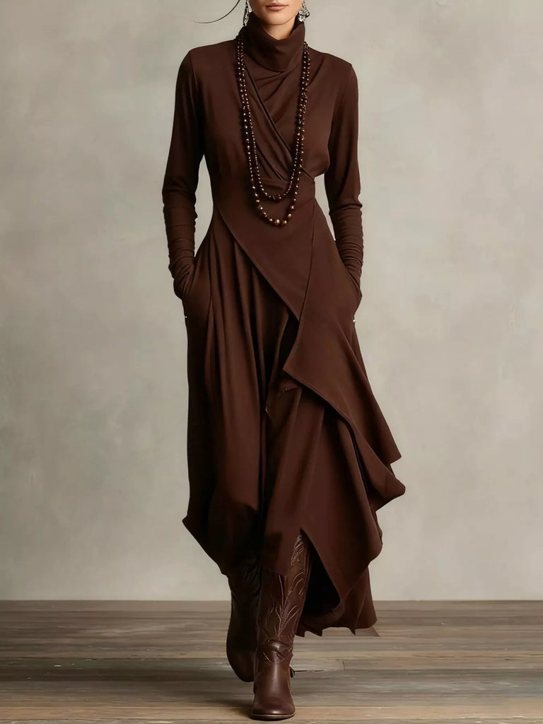 Turtleneck Asymmetrical Hem Maxi Dress Plus Size