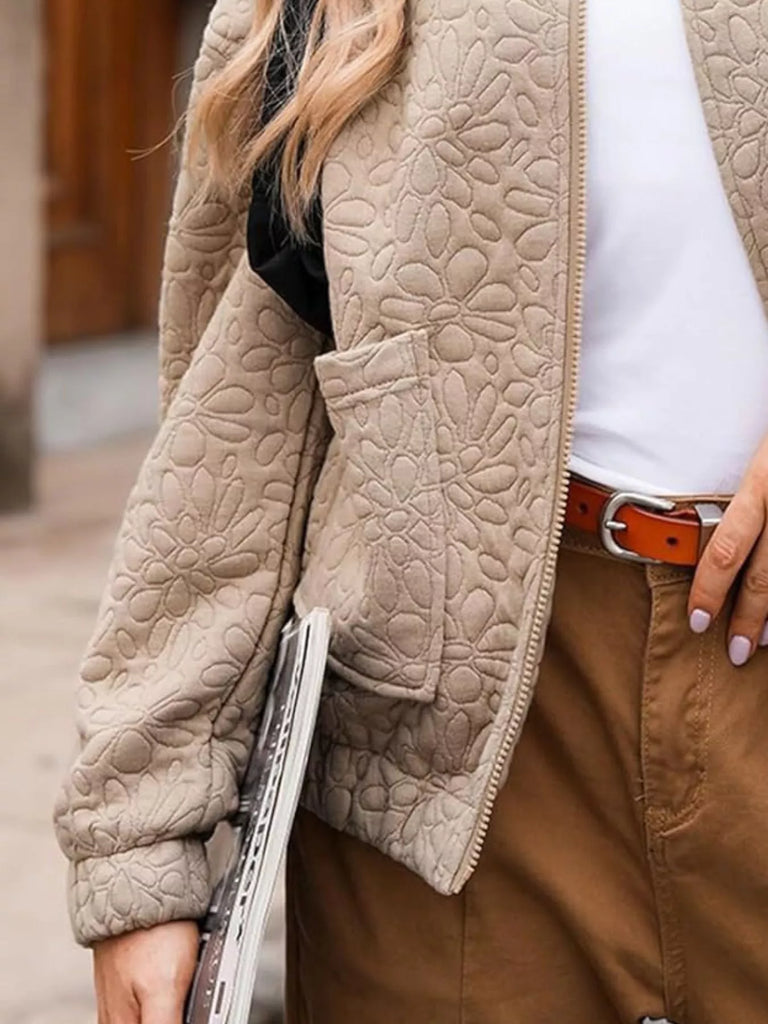 Floral Quilted Zip Up Jacket Plus Size